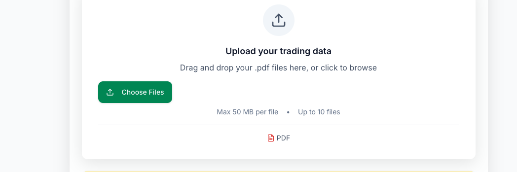 You can even combine both approaches: use CSV for the bulk historical import, then switch to PDF import for new trades going forward.